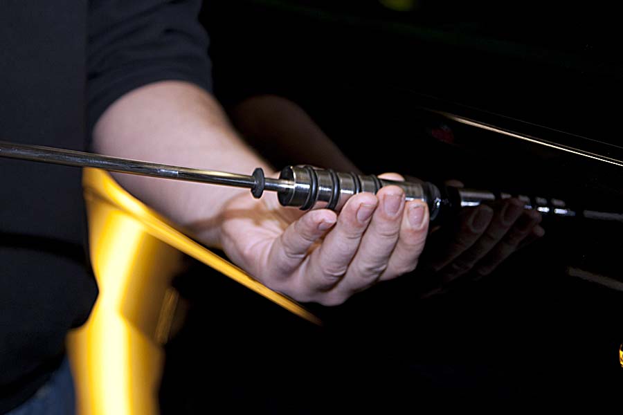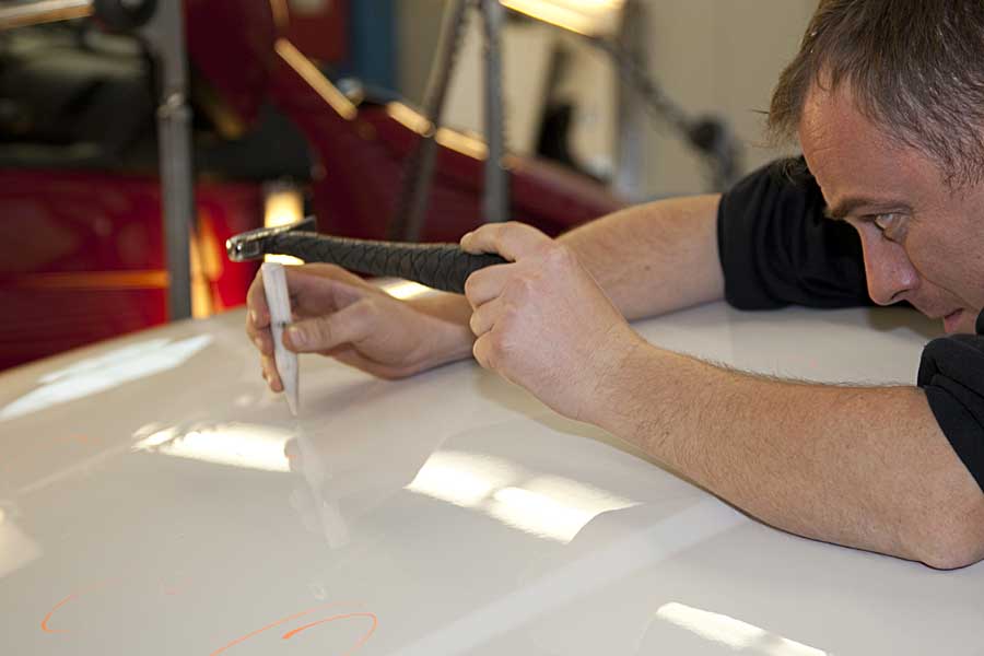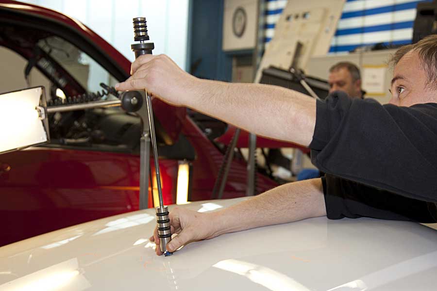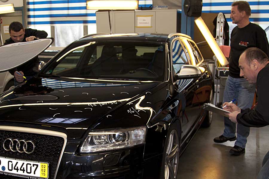 Mit Hilfe einer speziellen Lichtquelle erkennt unser geschultes Fachpersonal wo das Werkzeug angesetzt werden muss, damit der Originallack erhalten bleibt. Aufwändige Spachtel- und Lackierarbeiten fallen somit nicht an.